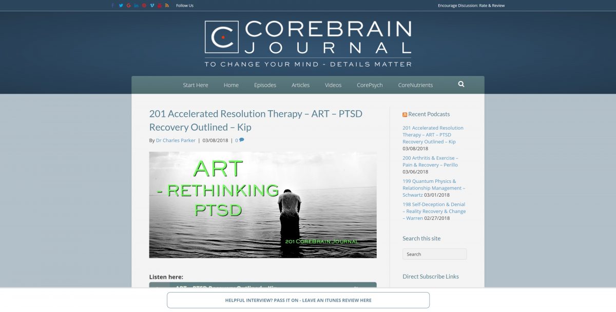 (Podcast) Dr. Kevin Kip on The CoreBrain Journal: Accelerated Resolution Therapy – ART – PTSD Recovery Outlined